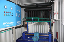 يمكن تصميم آلة صناعة كتل الجليد بالشكل المباشر والمياه المالحة كلهما في شكل الحاوية مما يسهل النقل والشحن.